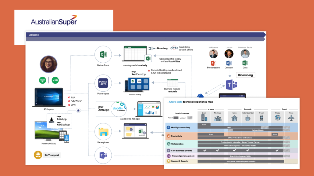 AS wanted to create a seamless employee experience, regardless of their location around the world. Employees were not able to reliably connect to the business from outside of a physical office environment, creating many challenges, especially for Senior managers and those travelling overseas.